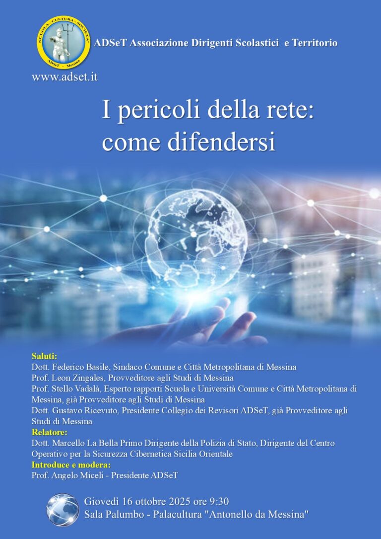 “E’ stata costituita, in data 19 marzo 2014, in Messina, l’Associazione “Scuola – Cultura – Società: Associazione Dirigenti Scolastici e Territorio” che vuole, al di là della denominazione che intende identificarne esclusivamente la matrice creativa, porsi sul territorio aprendosi a quanti hanno operato o operano nell’ambito della pubblica istruzione ed a quanti, pur operando in ambiti o settori diversi dall’istruzione, abbiano a condividerne gli scopi.